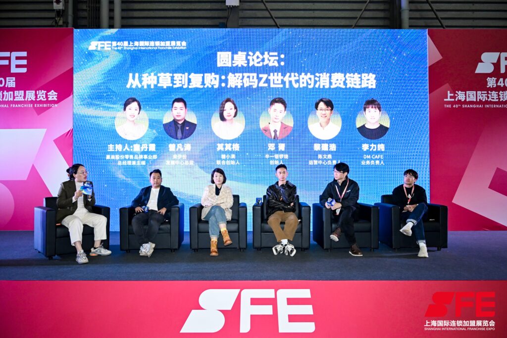赢商股份零售品牌事业部总经理兼主编 童丹霞、来伊份发展中心总监 曾凡涛、糖小满联合创始人 其其格、辛一铜锣烧创始人 邓胥、陈文鼎 运营中心负责人 黎建浩、DM CAFE业务负责人 李力纯,进行《从种草到复购:解码Z世代的消费链路》的探讨。