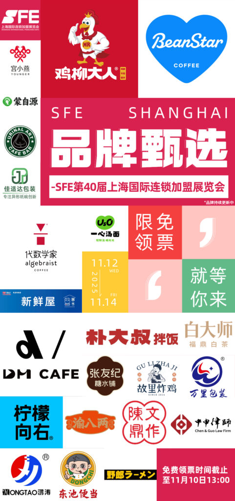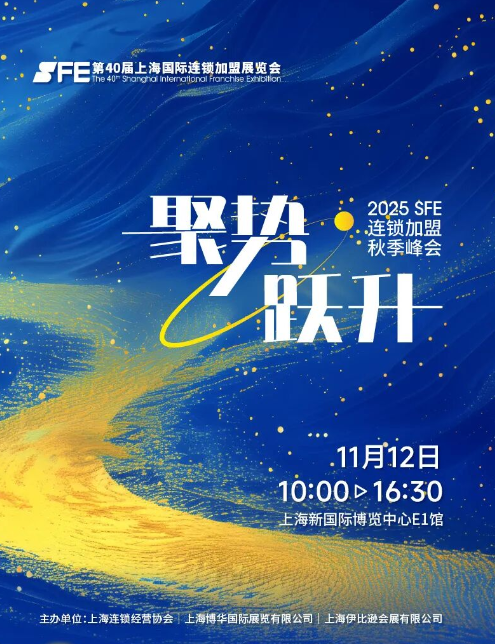 11月12日,由上海连锁经营协会、上海博华国际展览有限公司和上海伊比逊会展有限公司倾力打造的”聚势·跃升——2025SFE连锁加盟秋季峰会”将在上海盛大启幕。本次峰会聚焦连锁标准化、Z世代、税法、新增长等热点话题,紧密围绕小吃快餐、茶饮、休食、珠宝零售等细分赛道,特邀连锁行业领军企业高层、品牌咨询代表及数字化专家,通过多维主题的深度对话,助力连锁加盟行业实现从”规模增长”到”质量增长”的战略跃迁。