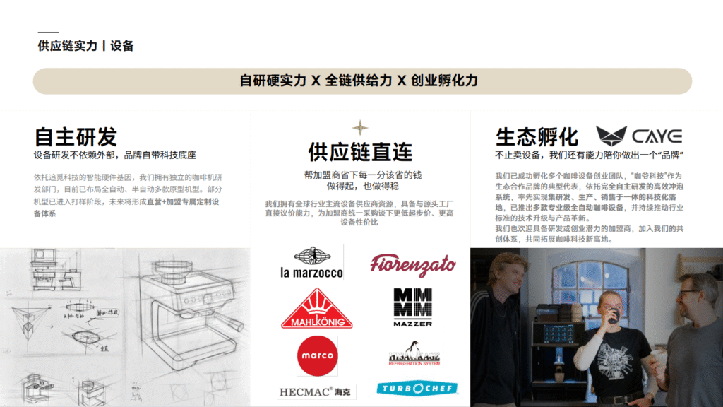 首先是资金压力被大幅降低:设备可分期,保证金可以抵货款,重点城市的营销费用由总部承担。这意味着开一家DM咖啡的初期现金流压力要比同行小很多。