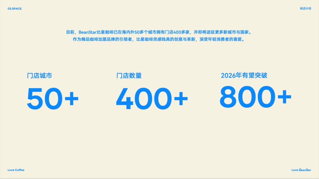 比星咖啡在全球已开设400+门店,现面向全国开放加盟,预计年底突破800家。