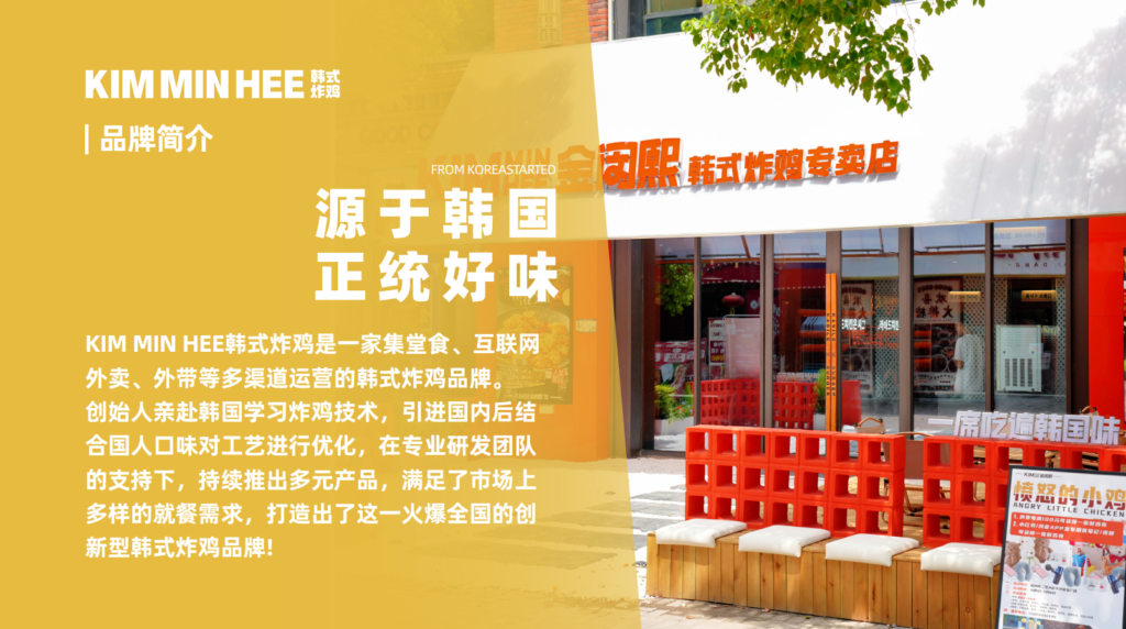 随着中韩文化的碰撞,越来越多的国人开始接受韩国的美食,其中韩式炸鸡是国人最接受认可的一类美食,KIM MIN HEE品牌紧跟市场发展推出了火爆全网的韩式风味炸鸡。KIM MIN HEE韩式炸鸡以良好的口碑,标准化的出餐流程以及稳定独特的口味,迅速打开市场,成为食客们熟悉的一家炸鸡品牌。