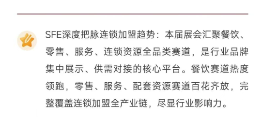 当中国连锁加盟行业迈入从规模扩张向价值深耕的转型关键期,SFE第41届上海国际特许经营及连锁加盟展览会,以一场为期四天的全产业链盛会,为行业高质量发展写下了全新注脚。
