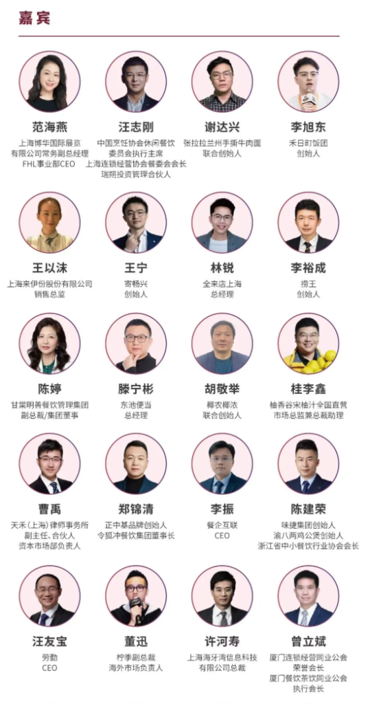 6场高规格主题峰会与系列配套活动,邀请到百余位连锁行业领军人物、资深操盘手、投资专家与跨界嘉宾齐聚现场,围绕模式创新、餐饮出海、数字化运营、供应链深耕等行业核心议题,展开深度分享与思想碰撞,输出了大量可落地的实战经验与前瞻性的行业判断。