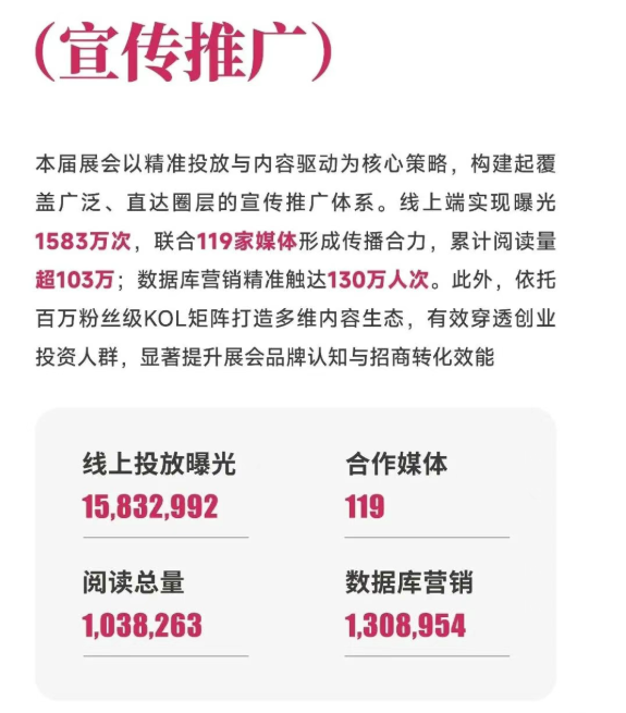 不仅有效扩大了展会的行业覆盖范围,更精准穿透了创业投资核心人群,为展会的高效落地与品牌曝光提供了强有力的支撑。