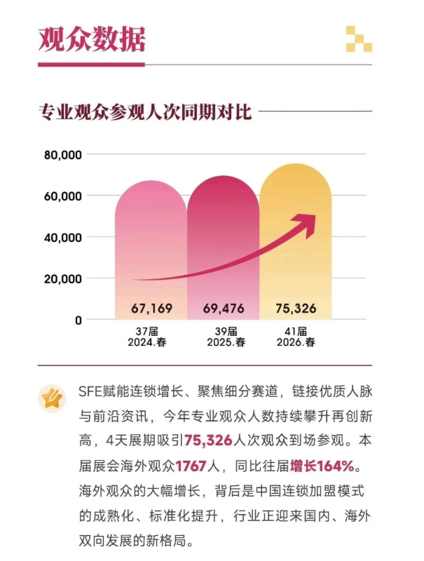 25,000㎡展出面积,75,326人次专业观众,SFE第41届上海国际特许经营及连锁加盟展览会于2026年3月30日-4月2日成功举办!